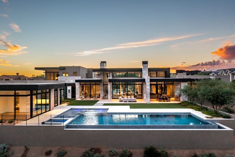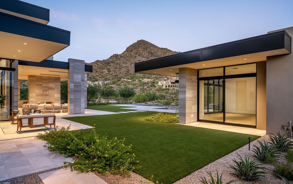 The Arizona home spans around 6,500 square feet. It follows a modern desert contemporary style. This design focuses on clean lines, open spaces, and strong indoor-outdoor flow.