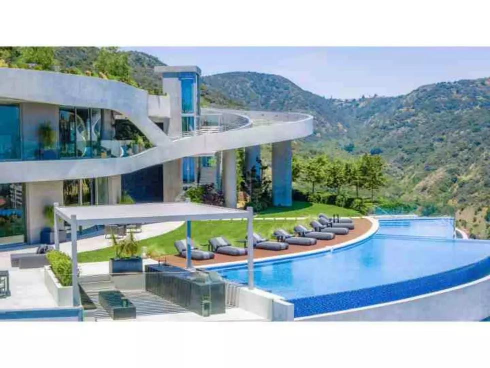 The estate is located in the Brentwood neighborhood of Los Angeles, California. It is a hillside property situated in an elevated position to maximize privacy and provide panoramic views of the city.