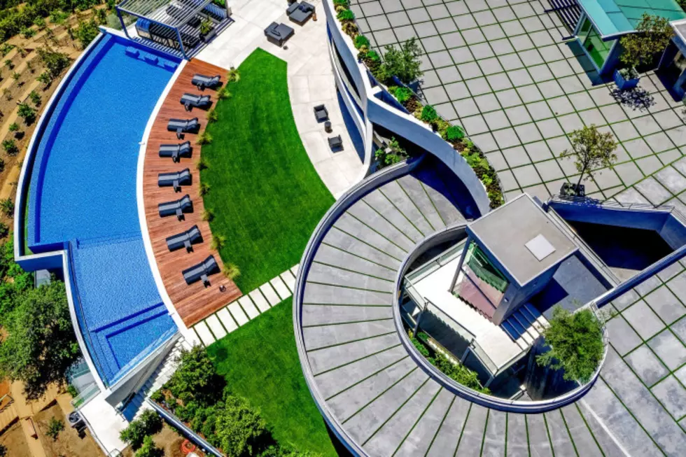 | Signature Features | Rooftop driveway, 75-ft infinity pool, auto gallery, private theater |